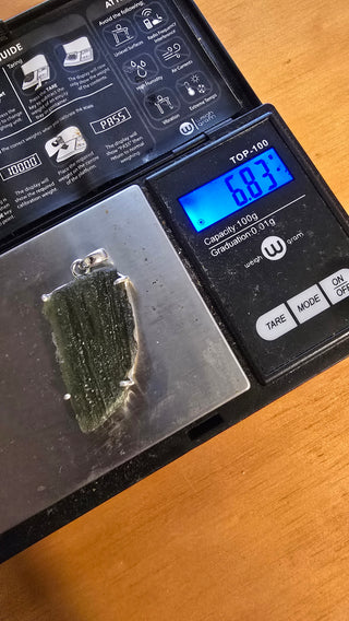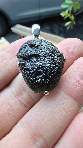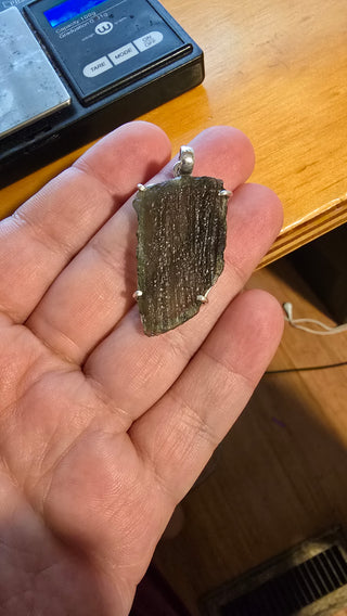Intuitively Chosen Small Moldavite Sterling Silver Pendant, Saged and Blessed (Real Czech Moldavite) (0.5-1.3 Grams)