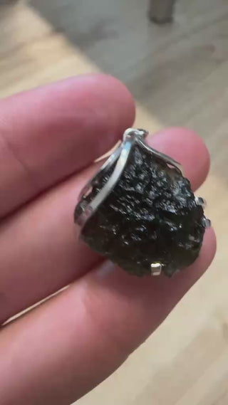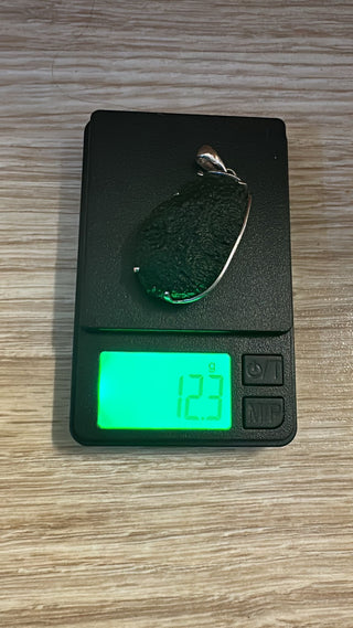 Beautiful 10 grams Moldavite with rhodium Sterling Silver (2 week delivery)
