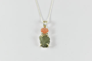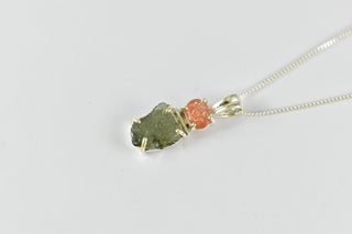One-of-a-Kind Moldavite & Sunstone Sterling Silver Pendant (3.93 grams) (No Chain)