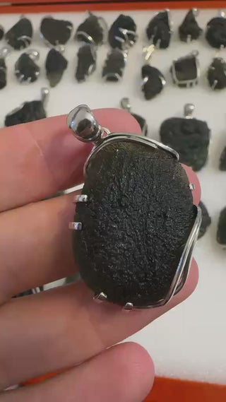 Preorder: Large moldavite Pendant with Sterling Silver, Rhodium 12.3 grams (2 week delivery time) (no chain)