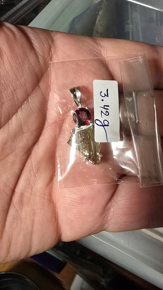 Moldavite and garnet 925 silver pendant for Yesenia Romo Diaz