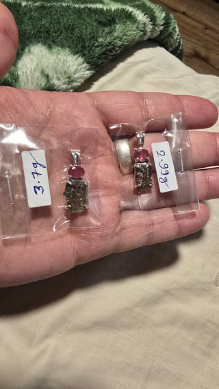 Dos Moldavite Pendants con pink tourmaline para Mario Soto